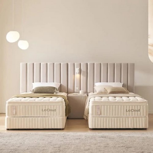 [라클라우드] 루즈노 프리미엄 침대 프레임+매트리스+패널 세트 _ 트윈 (아이보리/그레이)